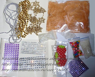 а еще Наташенька мне передала оооочень много богатства!!!! перышки, бусинки, полубусинки, пряжечки и столько красотищи, что пришлось на стул забраться с фотоаппаратом, чтобы все поместилось в кадр :)